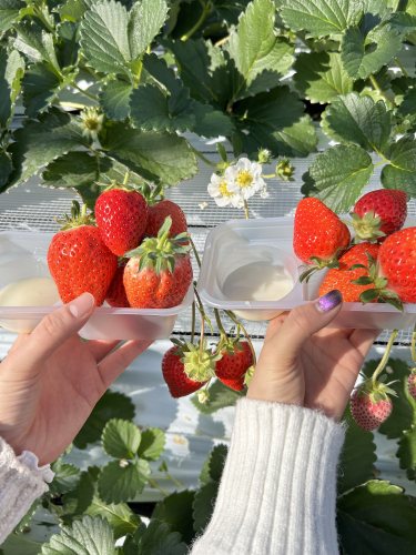 ひんやりと冷たい採れたてのいちごが沢山食べられますblush